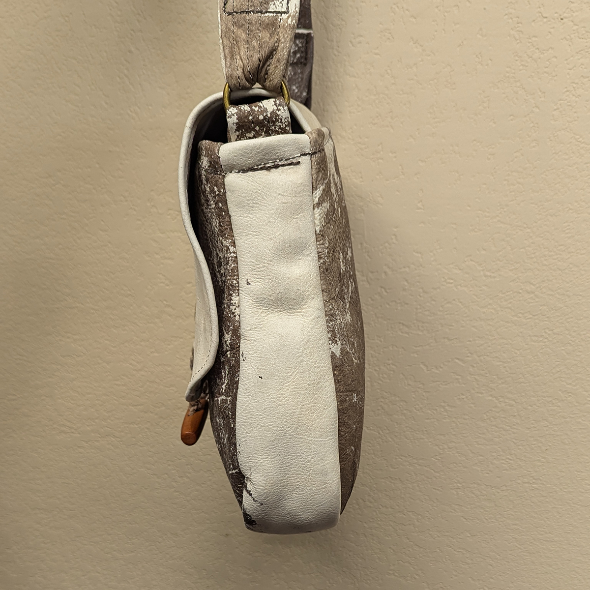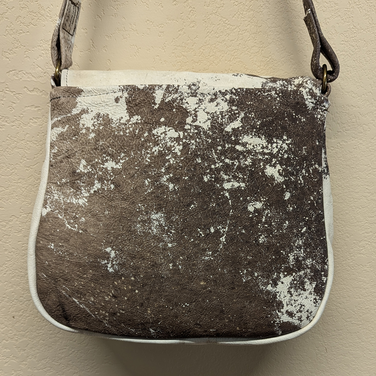 Brown & White Raw Hide Leather Shoulder Handbag