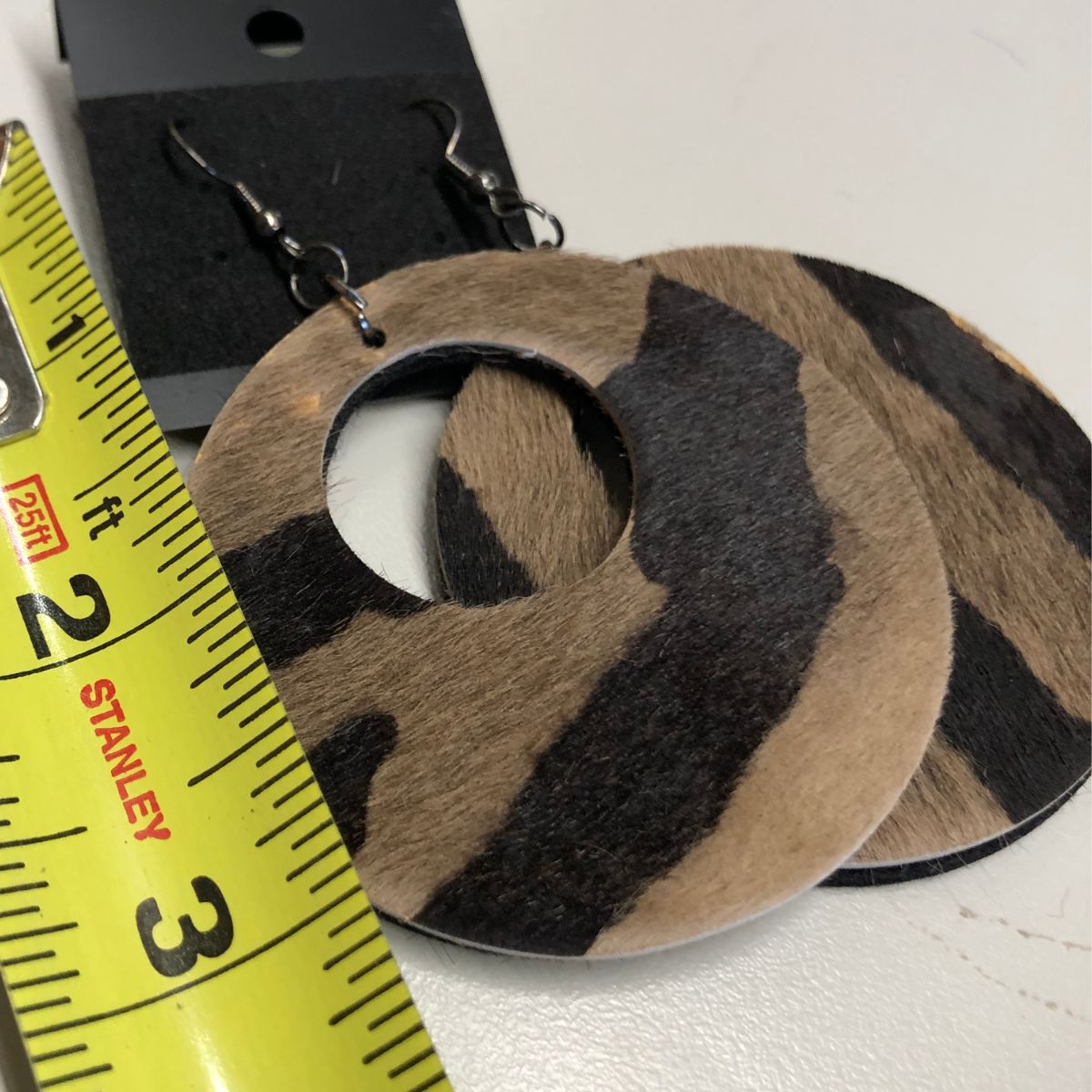 Real Leather Hair on Hide Dark Zebra Print Wide Circle Cutout Earrings with Titanium Black ear wire. Earring length 3.5 inches