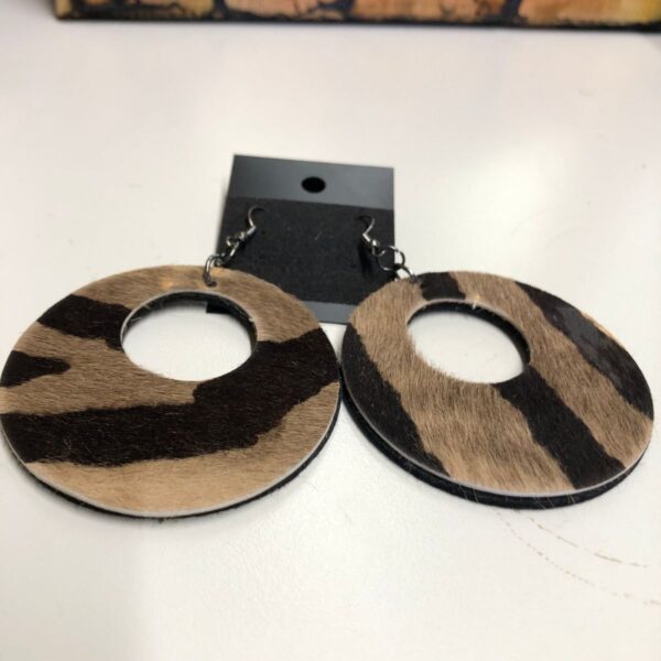 Real Leather Hair on Hide Dark Zebra Print Wide Circle Cutout Earrings with Titanium Black Earwires (Copy)