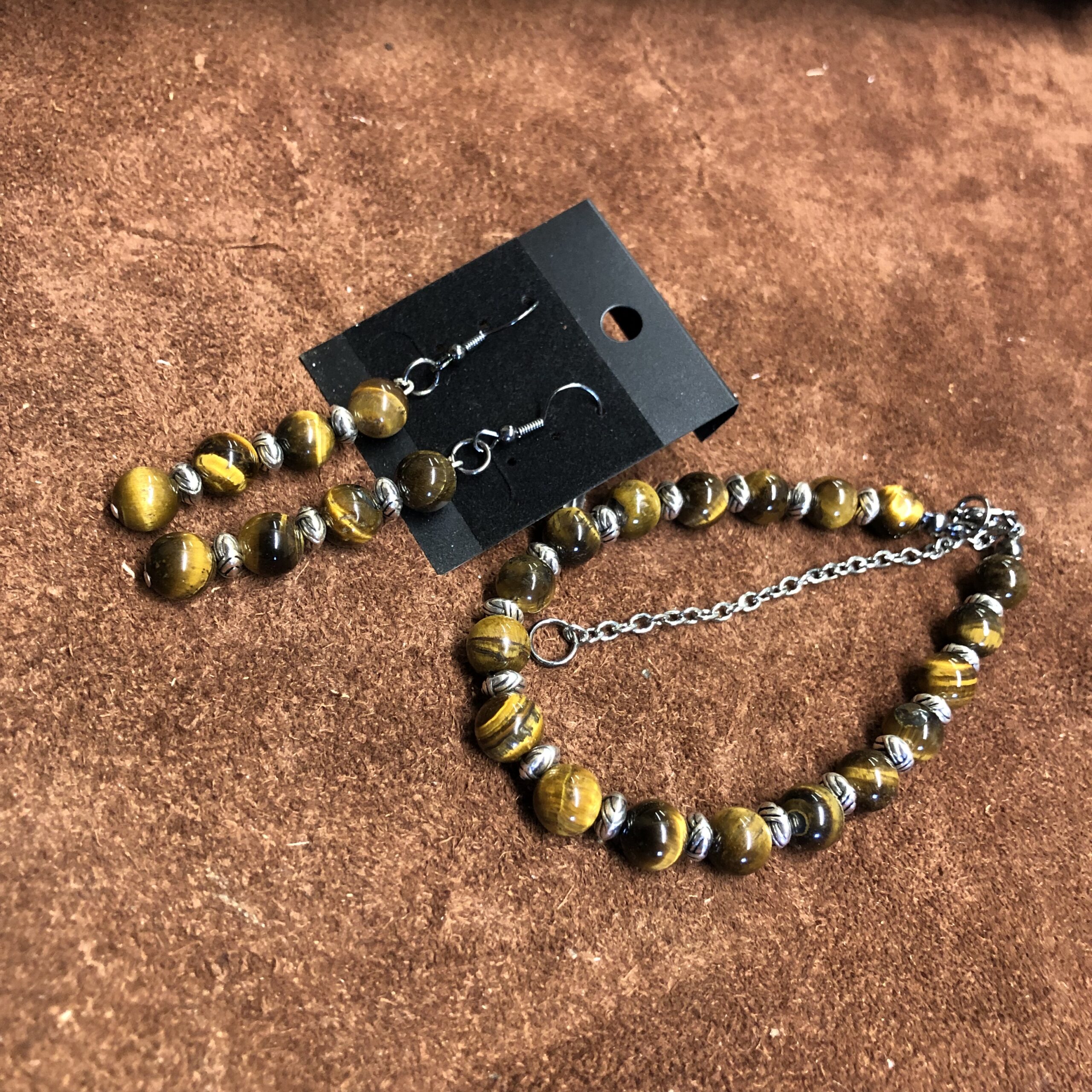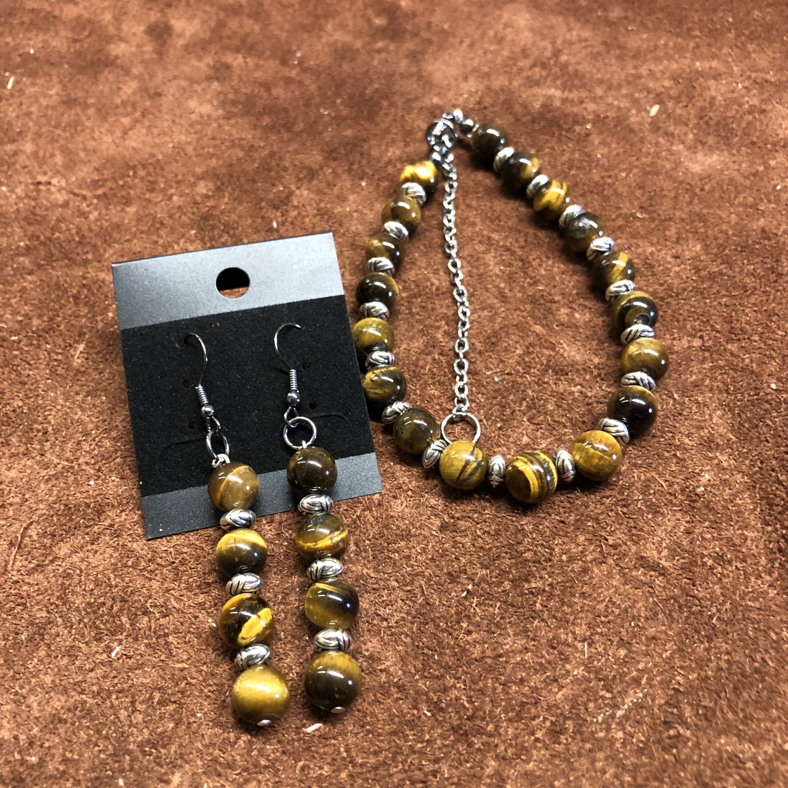 Tigers Eye Beads with Silver Accents Bracelet and Earrings.