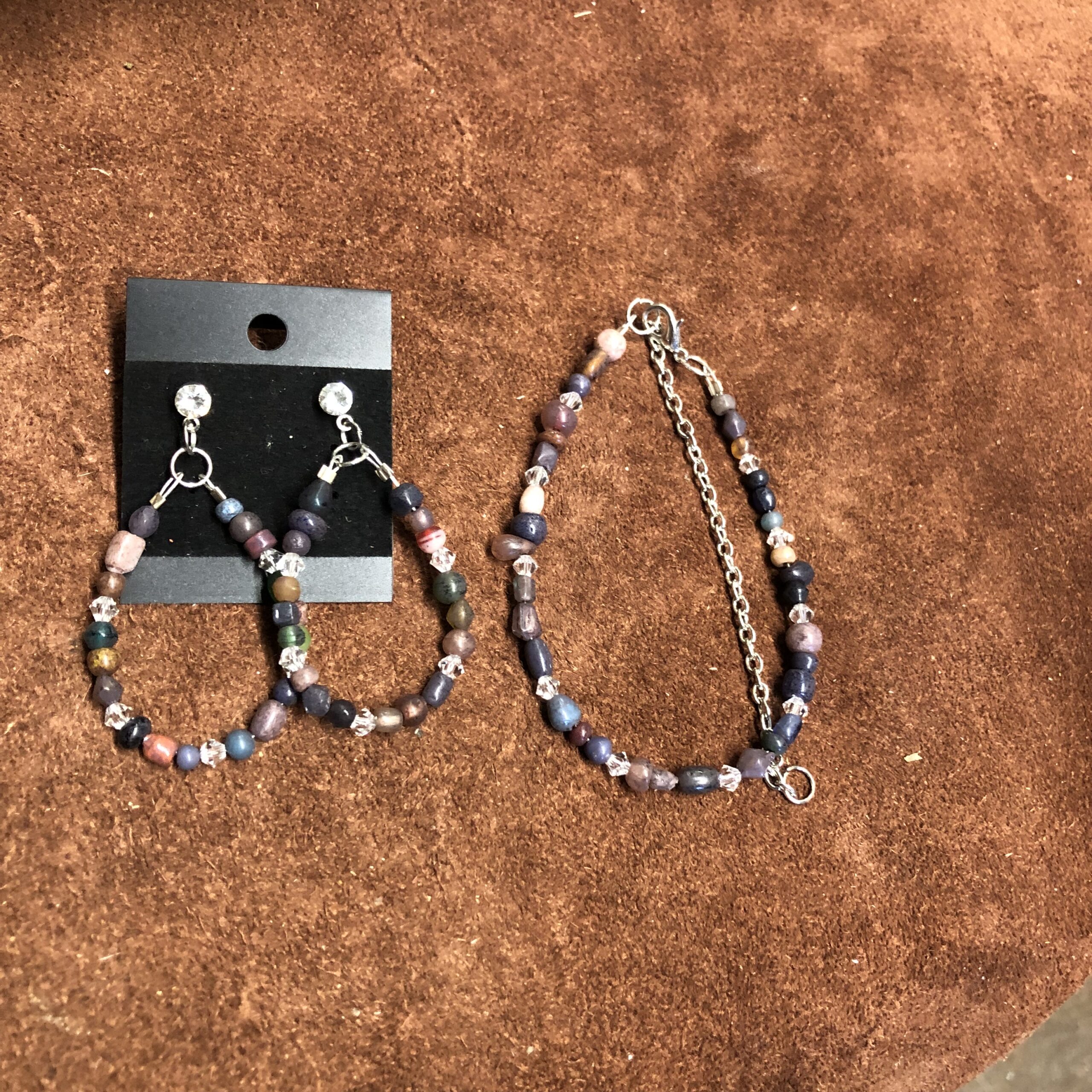 Various Colored Beads Bracelet and Earrings with Rhinestone Studs.